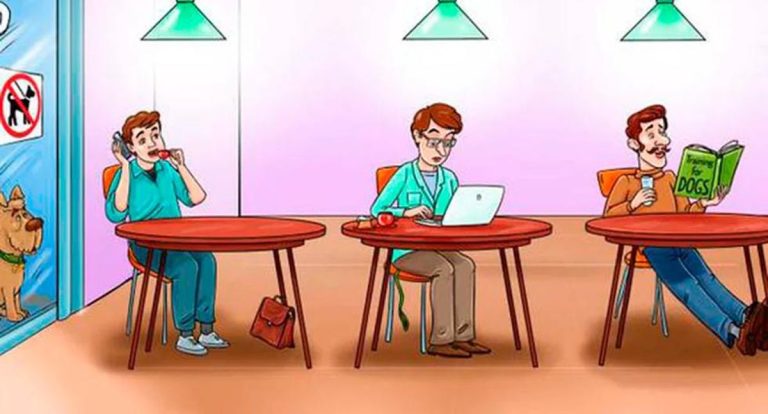 Jestli stále tápete, možná vás zmátl člověk s knihou o výcviku psa. Jenže muži uprostřed visí z kapsy kalhot vodítko, navíc ve stejné barvě, jakou má psí obojek. Pokud jste si těchto detailů nevšimli nebo jste si je nedovedli dát do souvislosti, nezoufejte. Potrénujte svou logiku a všímavost na dalších hádankách a brzy vám jejich řešení půjde zcela bez potíží.