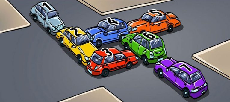 Silnice – bez ohledu na stát – jsou „semeništěm“ jak vážných dopravních kolizí, tak také velmi kuriózních situací. V USA se například pravidelně stává, že lidé nechávají přejít losy nebo jiná zvířata. Řidiči, kteří si toho nejsou vědomi, do nich pak často narazí. Tady se udála kolize hned sedmi aut. Klid, zatím není nic poškozeno a nikdo nebyl ani zraněn. Najdete způsob, jak se mohou jednotlivé vozy pohnout dál, pokud by bylo možné couvnout pouze s jedním autem?