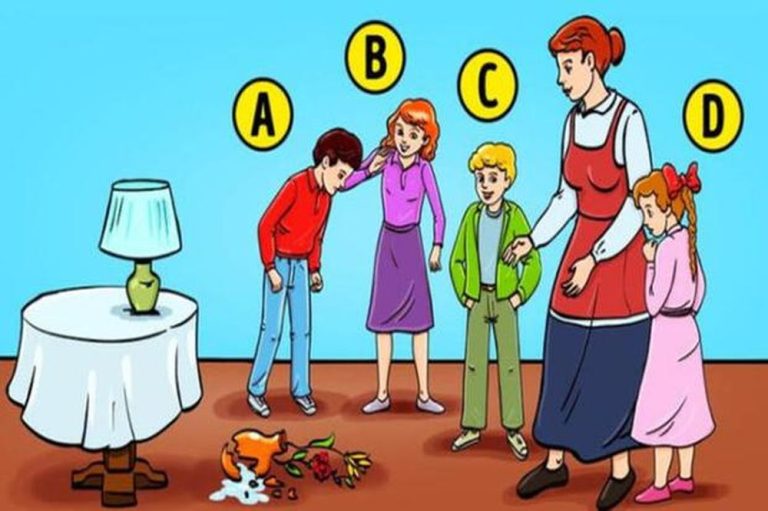 Tato hádanka bude trochu odlišná. Nedopátráme se totiž pachatele prohřešku, nad kterým se maminka dětí nejspíš zhrozila. Jde však o druh osobnostního testu, který pomůže odhalit některé stránky vaší osobnosti. Pečlivě si proto prohlédněte obrázek a zkuste pomocí dedukce přijít na to, kdo podle vás mohl rozbít vázu s květinami, která byla původně na stole. Dále pak najdete rozbor toho, jaká osobnost na základě vaší volby jste.