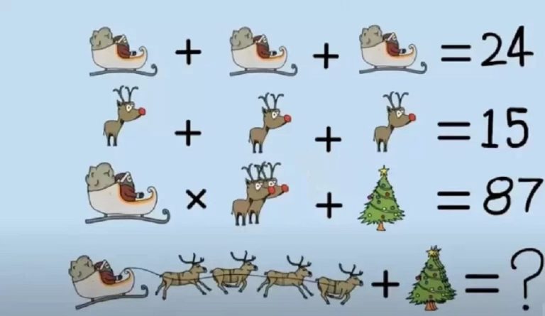 Tato matematická rovnice s vánoční tematikou je skvělým způsobem, jak otestovat své logické schopnosti a vědomosti, které si ještě pamatujete ze školních let. Pokuste se rozluštit, jaká čísla se pod jednotlivými symboly ukrývají, abyste nakonec vyřešili celou rovnici a zjistili, které číslo je jejím výsledkem pod otazníkem. Zaměřte se na jednotlivé detaily a nenechte se zmást.