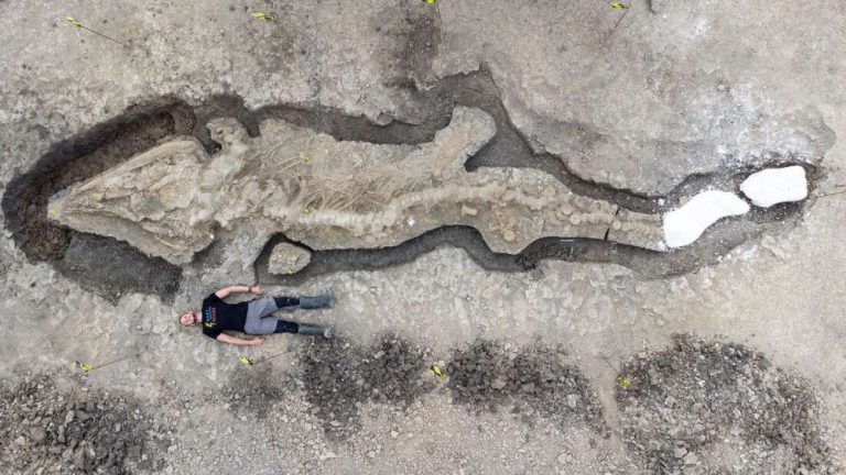 Obrovský Ichtyosaurus neboli „Obří drak“ je jednou z největších fosilií, jaká kdy byla nalezena. Pouhá lebka váží 1 tunu