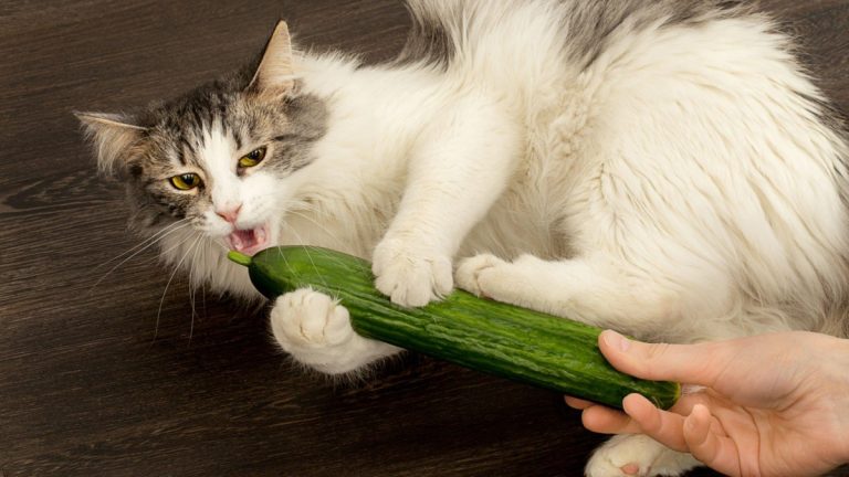 Že by se salátové okurky dopouštěly nějakých smrtících útoků, o tom nejsou žádné záznamy. Takže je potřeba nějak vysvětlit, proč před nimi kočky utíkají.