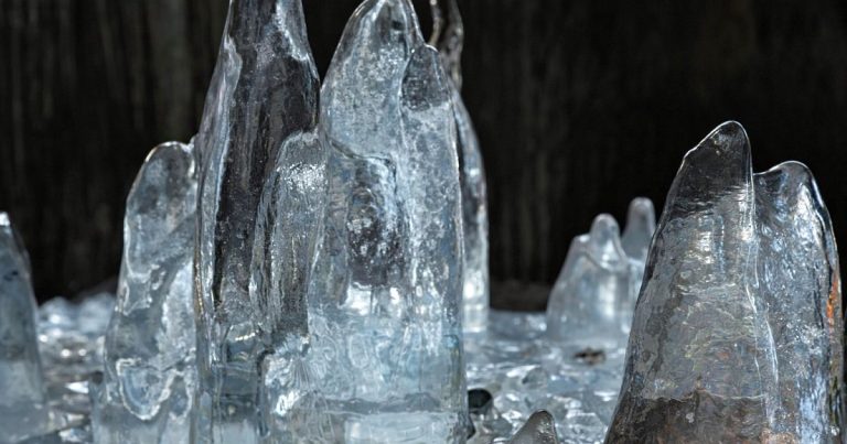 Ledové krápníky, které mění barvy