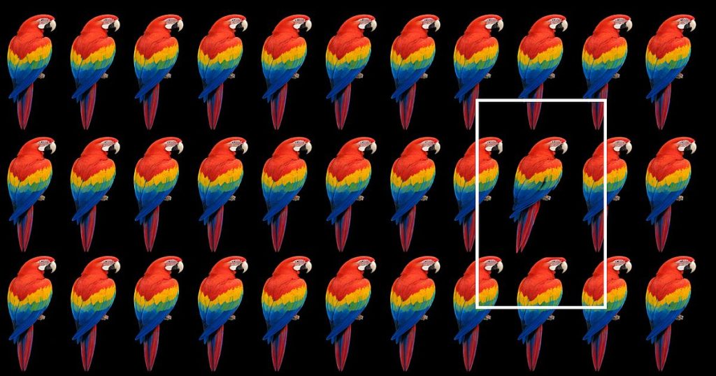 Na první pohled to vypadá jako hračka. Černé pozadí a na něm řady téměř stejných červených papoušků, pěkně srovnaných vedle sebe. Jenže vy už nejspíš tušíte, že tak jednoduché to opravdu nebude. Naopak – ukryli jsme totiž mezi ně jednoho odlišného a vaším úkolem je ho najít. A není to tak snadné, jak se zdá. Máte zhruba dvacet vteřin, během kterých se ukáže, jestli máte opravdu bystré oko, nebo vás mozek začne nenápadně sabotovat a odsoudí celé snažení k neúspěchu.